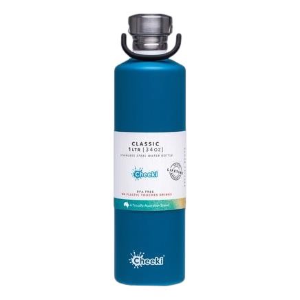 Capacity: 1.0 Litre Material: Premium Food Grade 304 (18/8) Stainless Steel. BPA Free bottle and lid. Toxic free paints. Height of bottle (including lid): 28.5cm Diameter of bottle base: 7.6cm Width of mouth (at smallest part): 3.6cm Features BPA, toxin and lead Free Minimal, plastic-free recyclable packaging Patent pending innovative design This product comes with a Cheeki Lifetime Warranty. These bottles are totally leak proof. Silicone seals means no plastic ever needs to touch your water again. Lids have quick twist and soft silicone close. Cup holder friendly. Handwash bottle. Dishwasher friendly lid. Freezing not recommended.