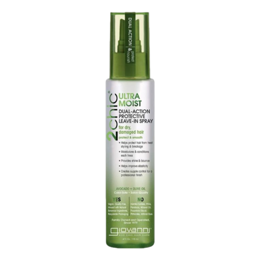 This leave-in spray for dry hair will not dull, strip colour, or damage your hair. It’s 100% colour-safe, paraben-free, and cruelty-free. Look in the Ingredients tab for a listing of USDA certified organic ingredients. Browse our full 2chic Ultra-Moist line for complete nourishment of hair that lacks shine and nutrition.