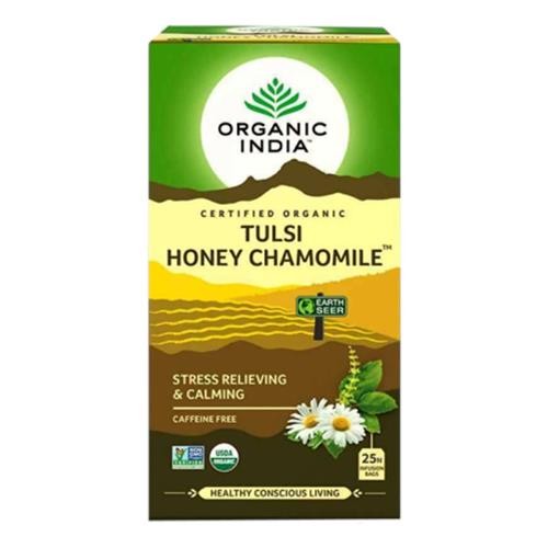 Ingredients: Organic Krishna Tulsi (Leaf), Organic Vana Tulsi (Leaf), Organic Rama Tulsi (Leaf), Organic Chamomile (flower), Organic Fennel (seed), Honey Flavour