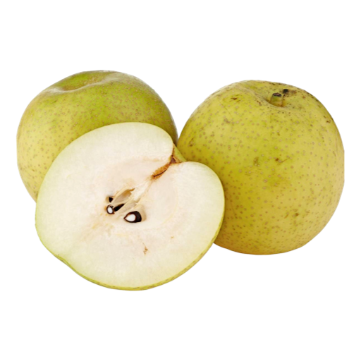Green Nashi pears have a cream/white flesh which is sweet, firm, crisp and juicy, with a green to yellow russeted skin colour. Nashi pear is unlike the typical European style pear, it's ready to eat and does not need time to ripen and soften.